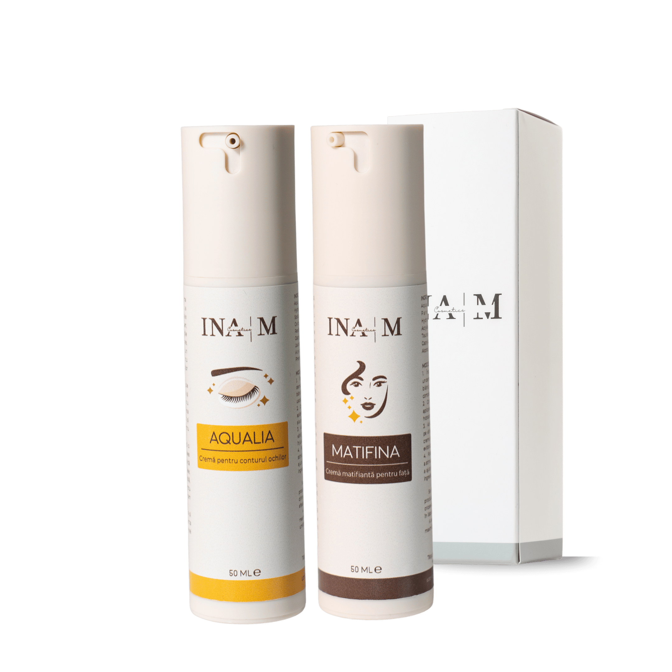 SET: 50 g Aqualia, Cremă de ochi cu cafeină + 50 g MATIFINA, Cremă matifiantă