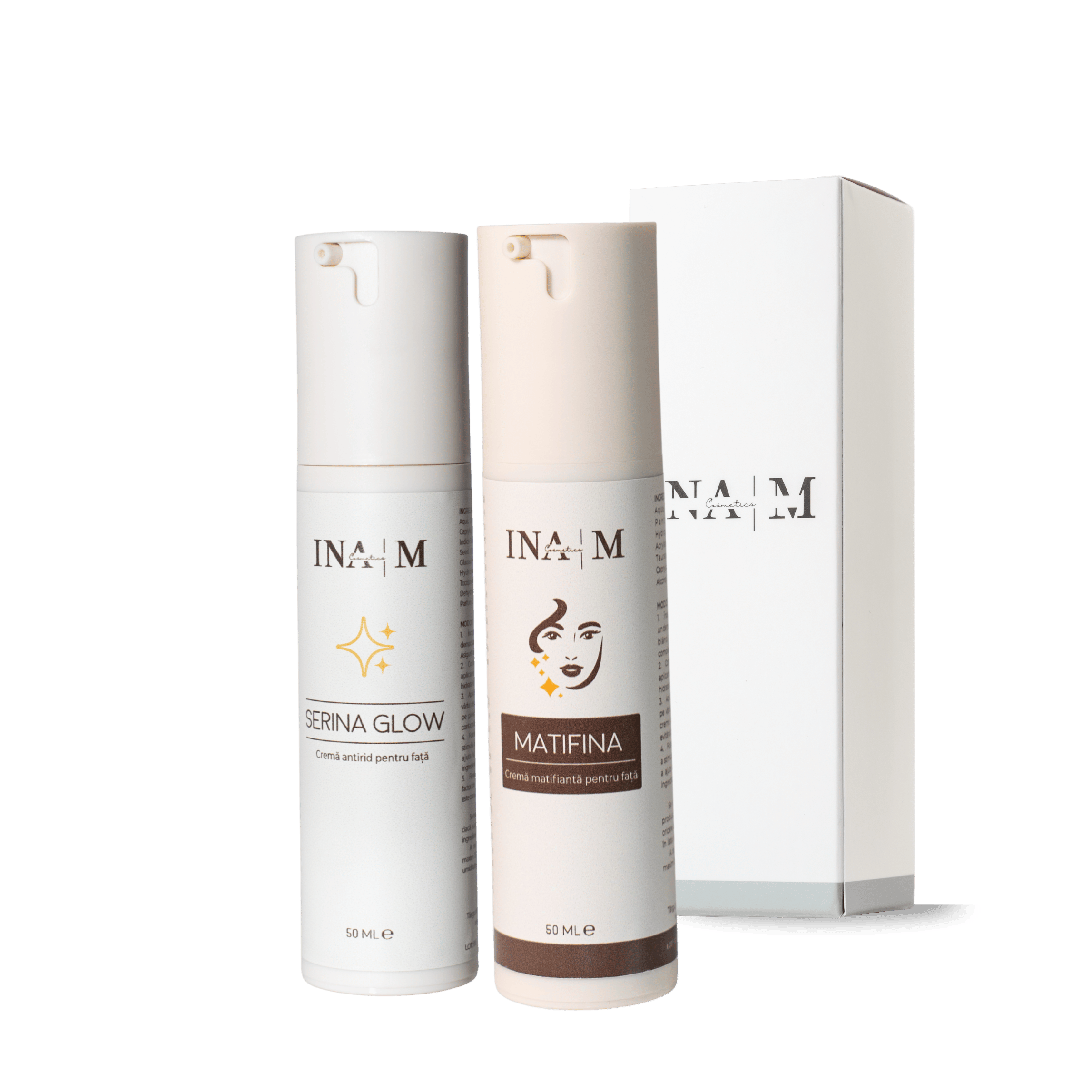 Pachet Promo Rejuvenare și Matifiere: Cremă antirid iluminatoare cu Acid Hiaulornic Dual SERINA GLOW + Cremă de zi matifiantă MATIFINA (COD-C8)