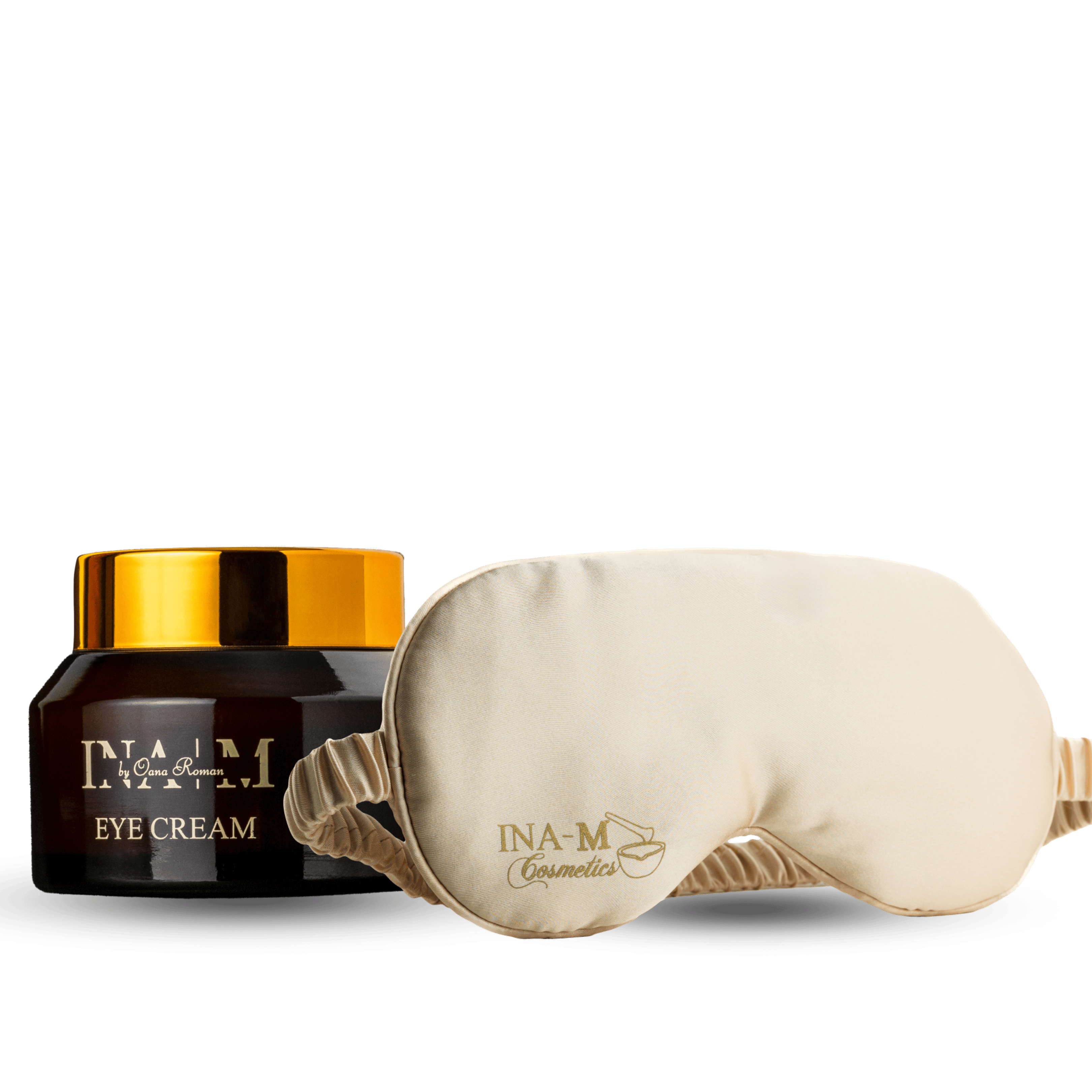 SET CADOU: DREAMY EYES, Cremă pentru ochi cu Bakuchiol și Mască pentru somn din mătase naturală – INA M by Oana Roman